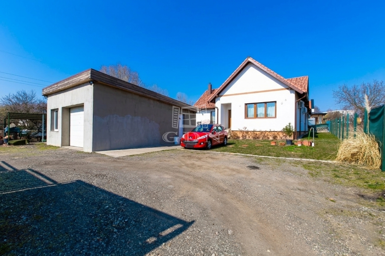 Az udvaron áll még egy 110 nm-es két állásos garázs tárolóval, illetve egy 40 nm-es télikert ami alatt egy ugyan ekkora pince áll rendelkezésünkre.