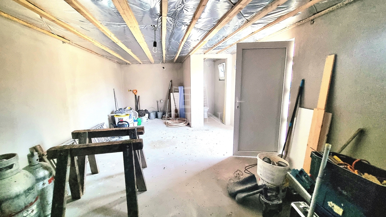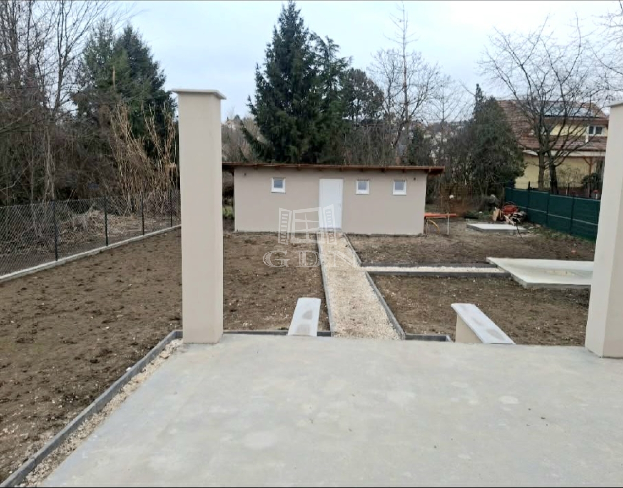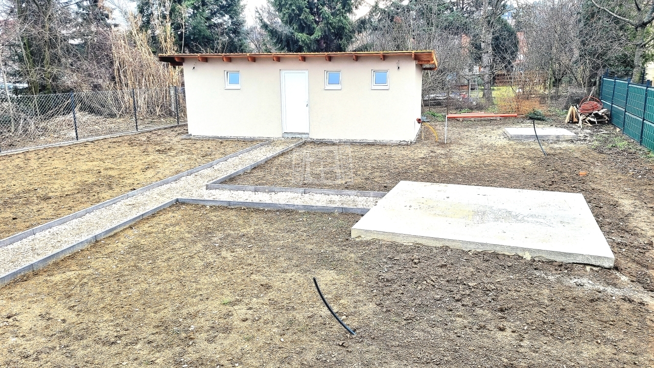 A telken egy különálló 30 nm-es közműves, szigetelt kisház épült,