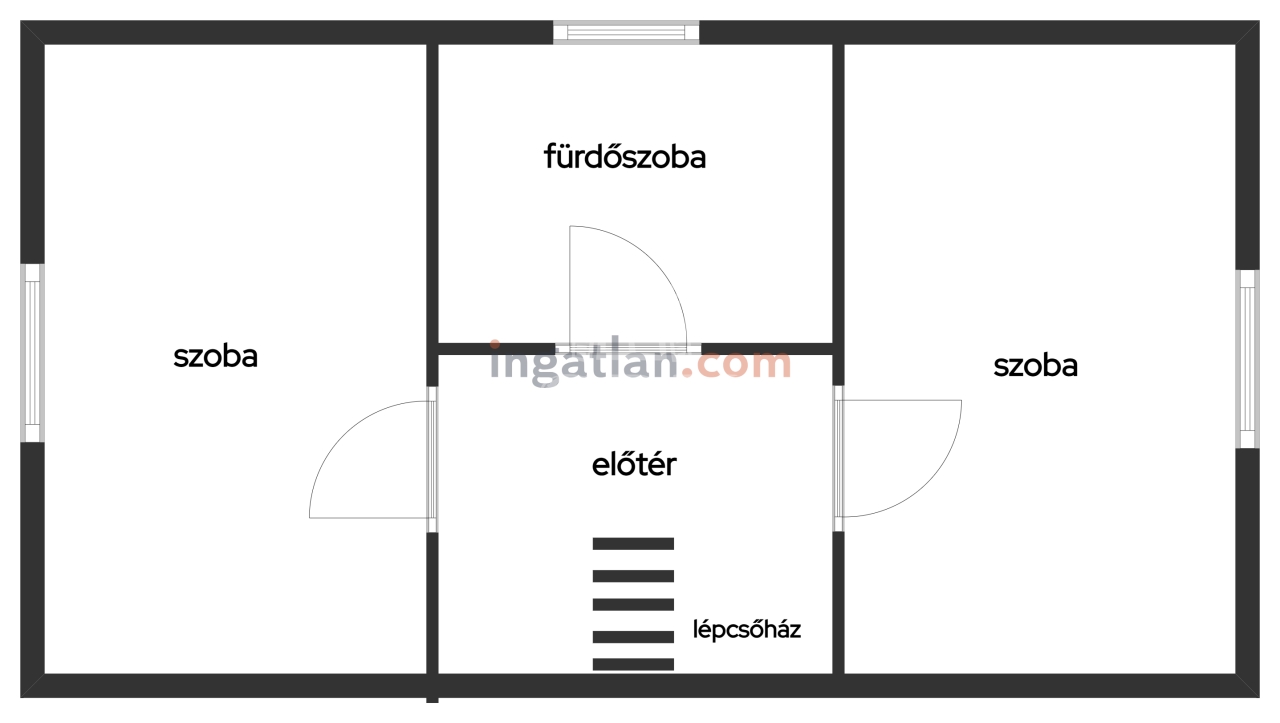 háztartási helyiség, a felső szinten 2 szoba, fürdőszoba helyezkedik el.