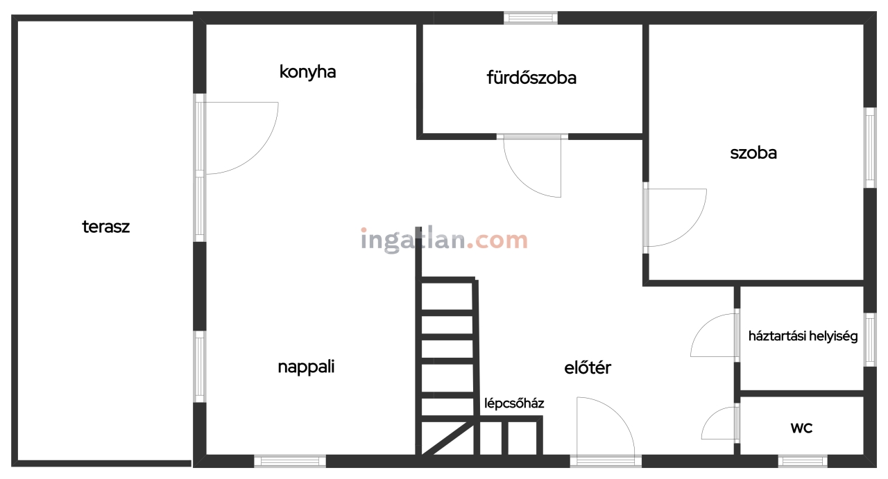 Az épület kiváló beosztású, az alsó szinten napfényes, teraszkapcsolatos, amerikai konyhás nappali, hálószoba, fürdő, wc,