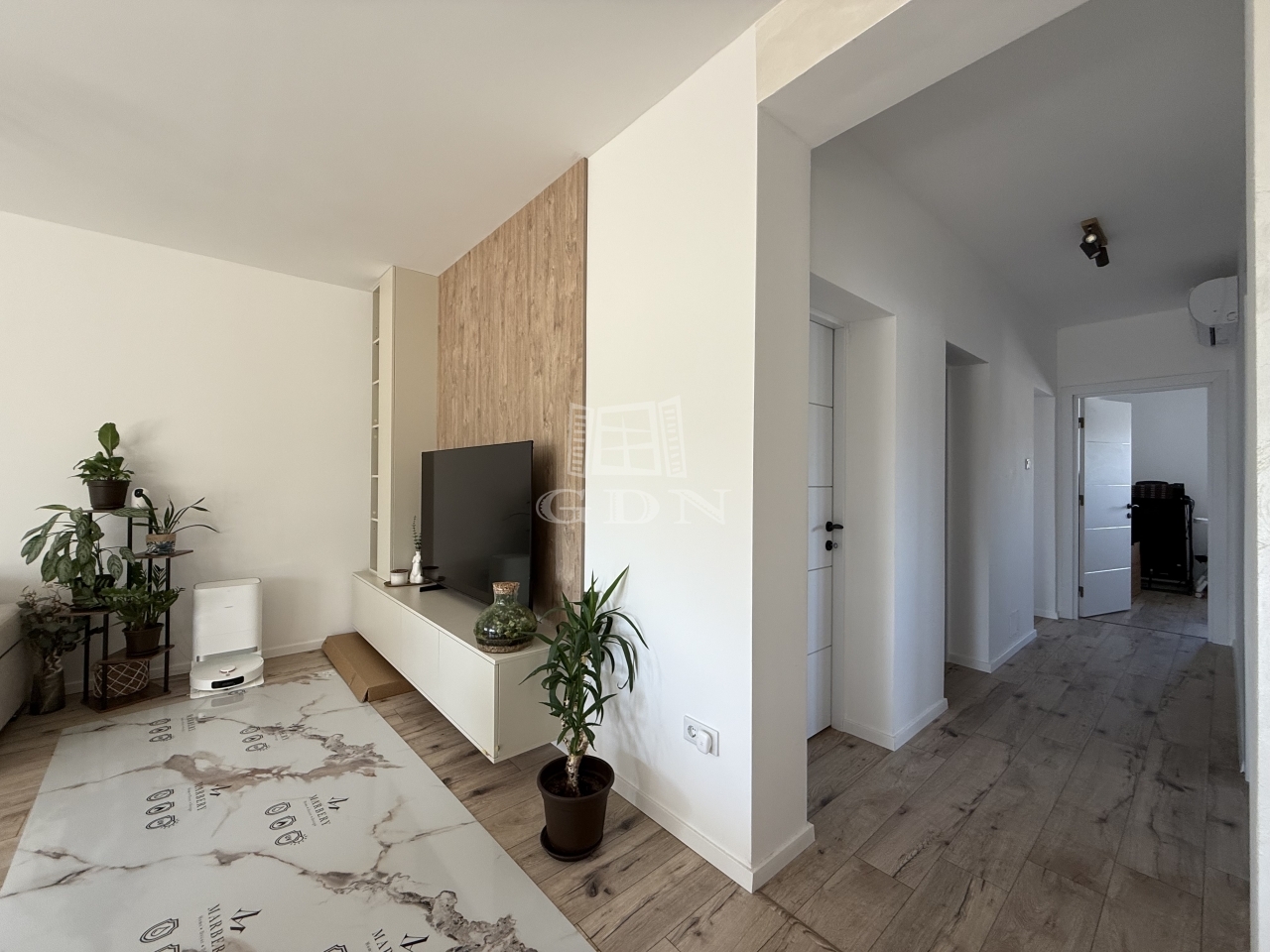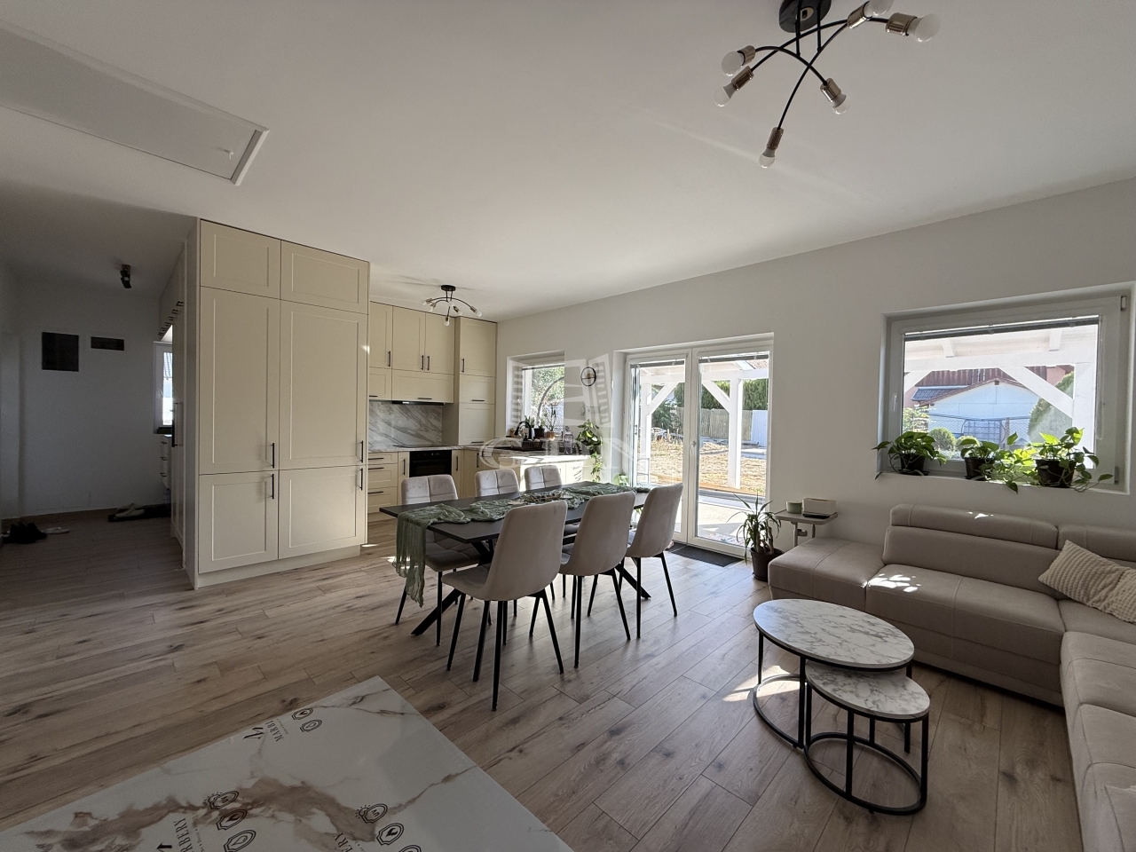 Az ingatlan amerikai konyhás nappalival, három kényelmes hálószobával, háztartási helyiséggel, fürdővel és előszobával rendelkezik, valamint egy 20 m²-es terasz is kapcsolódik hozzá, amely tökéletes helyszín a pihenéshez vagy családi étkezésekhez.