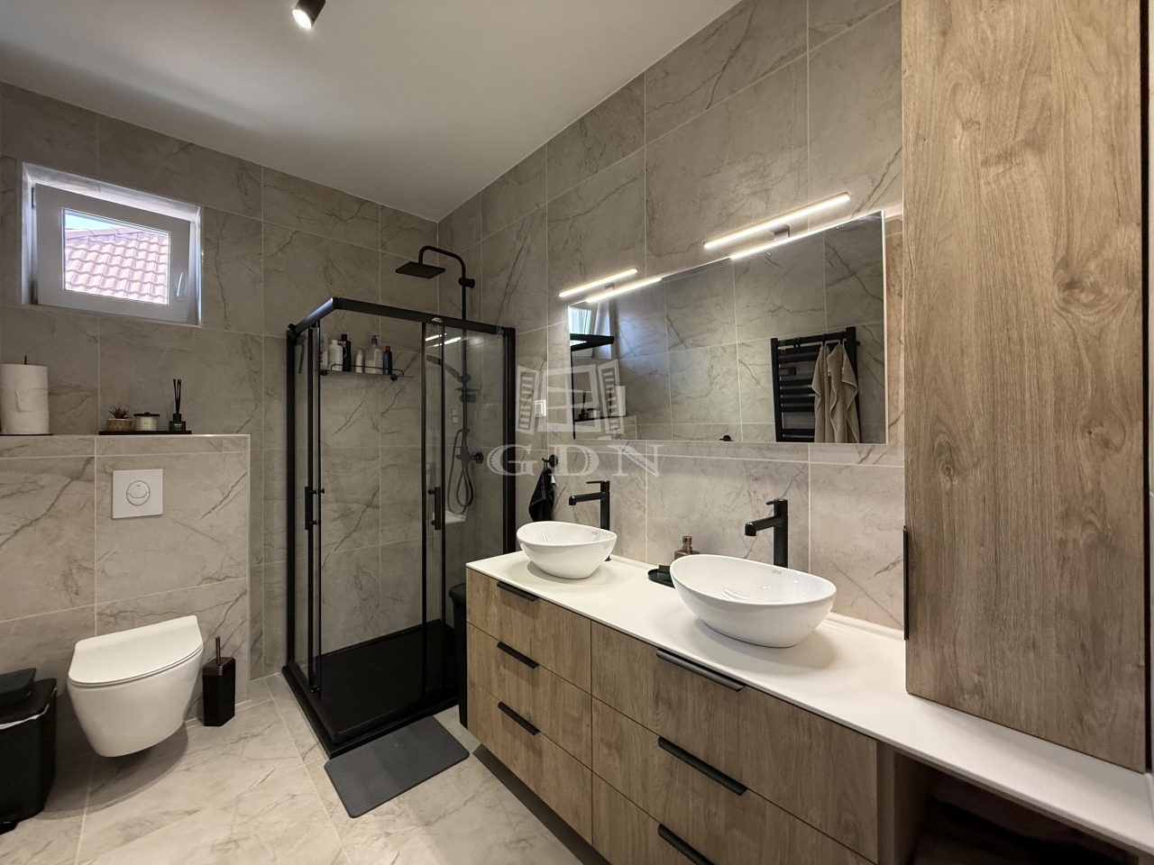 A ház „A” energetikai besorolású, melyet a kiváló szigetelés mellett a monoblokkos hőszivattyúval működő padlófűtés biztosít. A hat légkamrás, háromrétegű üvegezésű nyílászárók gondoskodnak a modern megjelenésről és a hatékony hőmegtartásról, míg a tetőt betoncserép fedi.