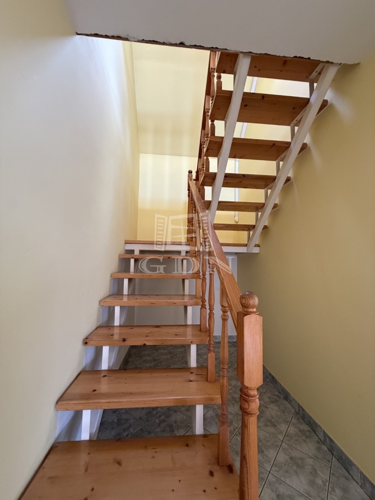 Az alsószint : előszoba, +, konyha spájzzal, étkező, nappali, 1 háló szoba, fürdőszoba ( kád és zuhanyzó is van) + wc +terasz található.