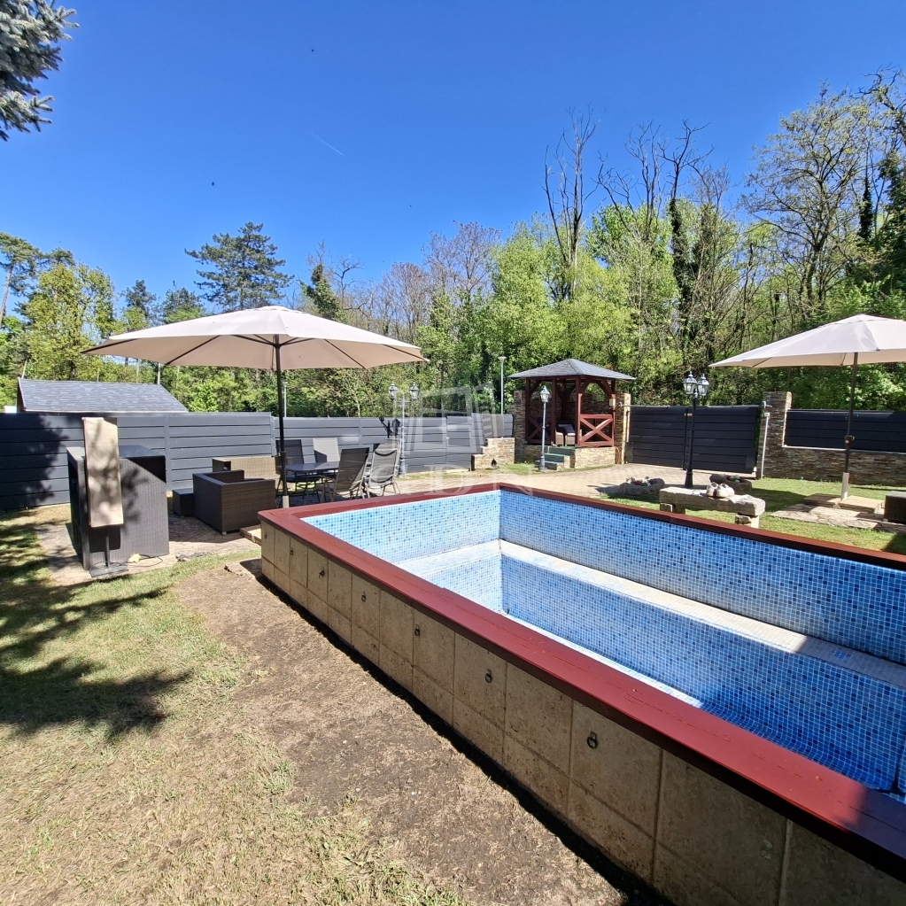 És hogy mitől különleges? Mert nagyon szép kőburkolatokkal látták el, mert ebben a természetközeli ingatlanban jó minőségű fa nyílászárók vannak, nagyon szép falépcsőn tudunk feljutni a tetőtérbe. Mert az udvaron igazán lehet pihenni, azért mert csend van, mert kettő, fedett pihenősarkot is kialakítottak. A szépen gondozott kertben van bőven hely a kertibútorok, napernyők számára így barátokkal és a nagyobb családdal is kényelmesen tudunk kikapcsolódni. Egy kisebb medencében lehet fürdeni, hűsölni meleg napokon. A kerítés is kőburkolat és gondozásmentes kerítéselemekből áll, ezzel teljesen intim szférát hoztak létre. Két utca felől is be tudunk jutni kapun keresztül autóval, a harmadik oldalon pedig személyi bejárat van.