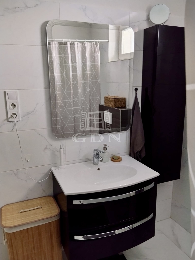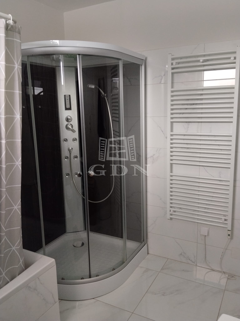 A ház nettó 95,49 négyzetméteres lakóterülettel rendelkezik, amelyet átgondolt, praktikus elrendezés jellemez. A tágas, amerikai konyhás nappali a lakás központi tere, amely természetes fényben gazdag, jól berendezhető, és közvetlen kapcsolatban áll a kerttel. A három külön nyíló szoba kényelmes életteret biztosít akár családok számára is. A konyha teljesen gépesített, a beépített bútorokkal és eszközökkel együtt a vételár részét képezi, ahogyan a fürdőszoba berendezése és a zuhanykabin is. A padlástér további praktikus tárolási lehetőséget kínál.