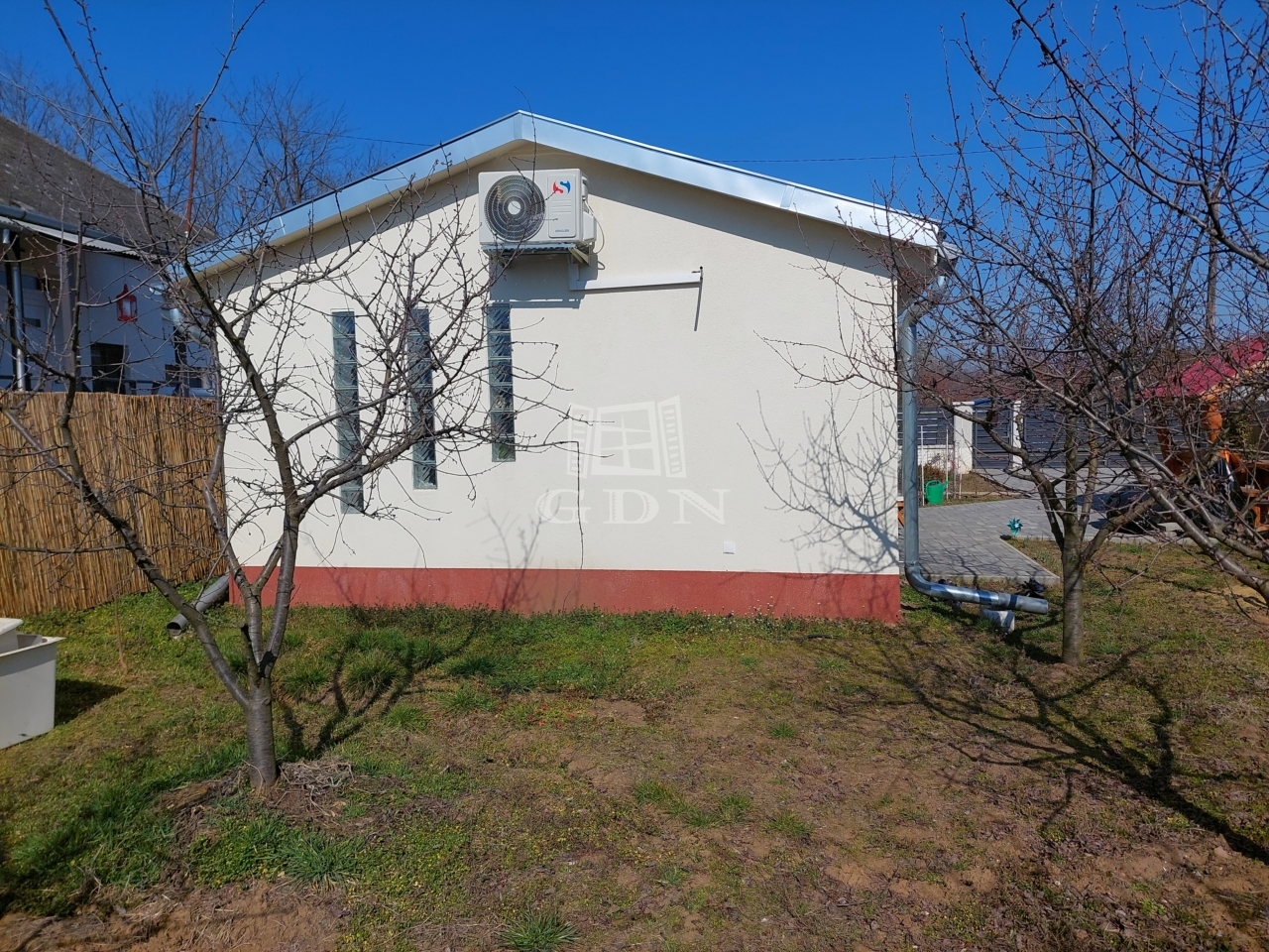 Az előkert részén helyezkedik el egy új kerti szerszámtároló, illetve itt lehet létrehozni egy kis konyhakertet is. A szépen gondozott hátsó kertben fiatal gyümölcsfák találhatók és ezen a területen, szükség esetén a ház további bővítése is lehetséges. A környék kifejezetten csendes, nyugodt kertvárosias. Bár az ingatlan előtt jelenleg még murvával borított út található, de a két szomszédos utca felől aszfaltozott úton közelíthető meg.