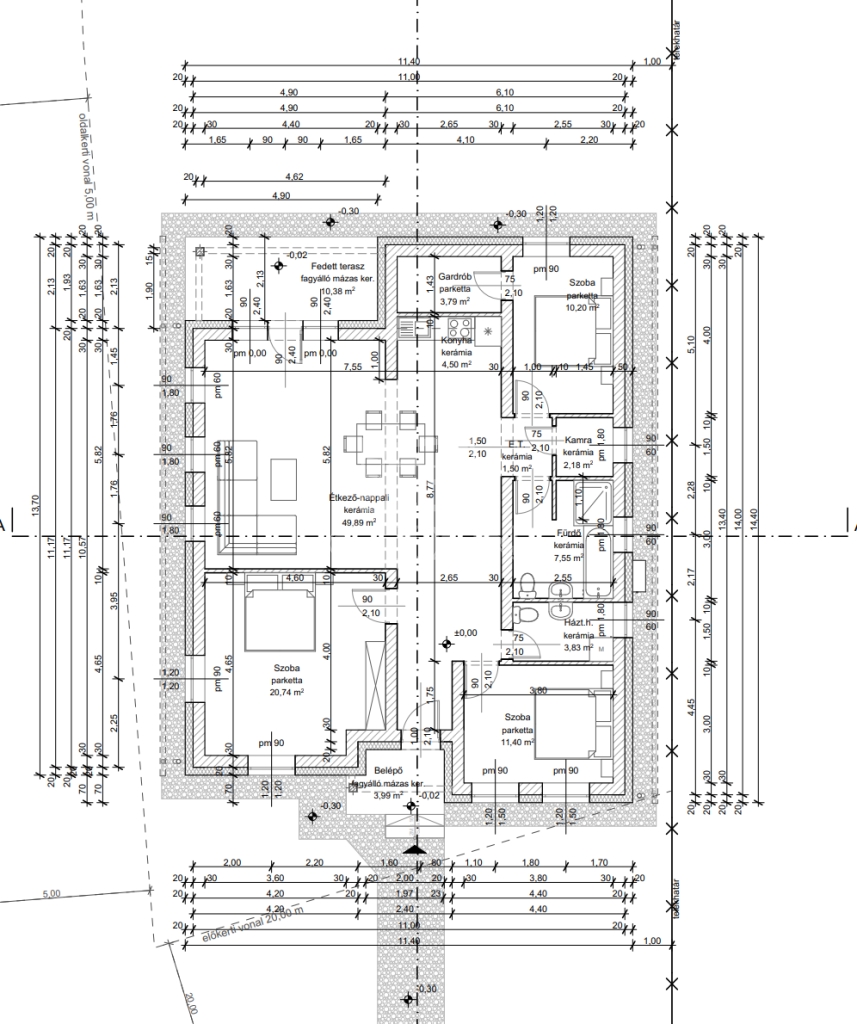 - A ház kizárólag téglából, 16 cm hőszigeteléssel épül, cserép héjazattal
