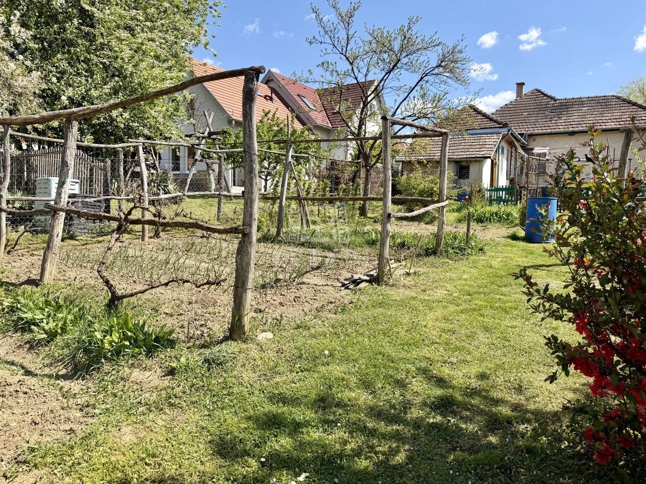 A kert folyamatosan gondozzák, jelenleg is veteményes és termő gyümölcsfák találhatóak benne, locsolása kútról megoldott.