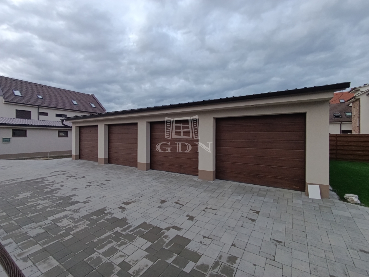 A 19 m²-es garázs elektromos kapun keresztül közelíthető meg, kényelmes és biztonságos parkolást biztosít.
