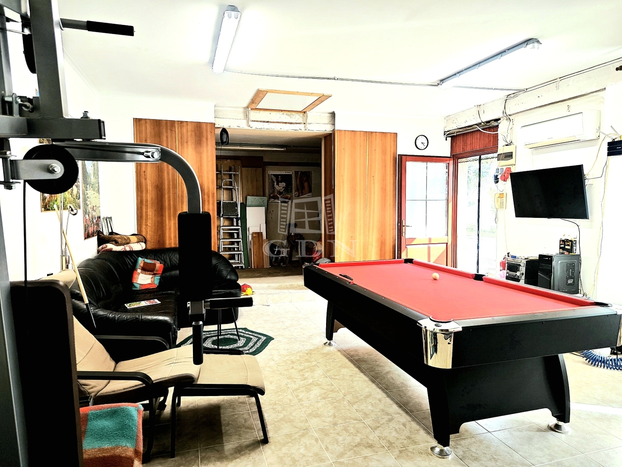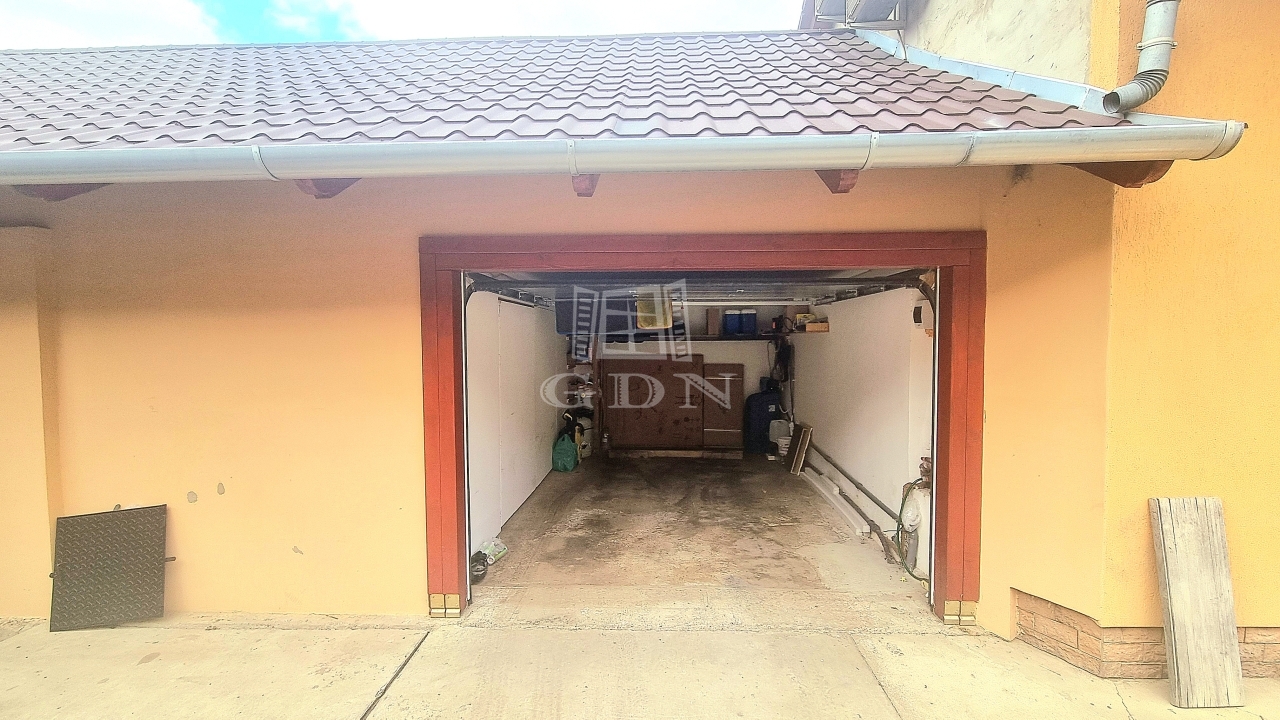 A gondozott kertben fedett szaletli, zárt garázs épült.