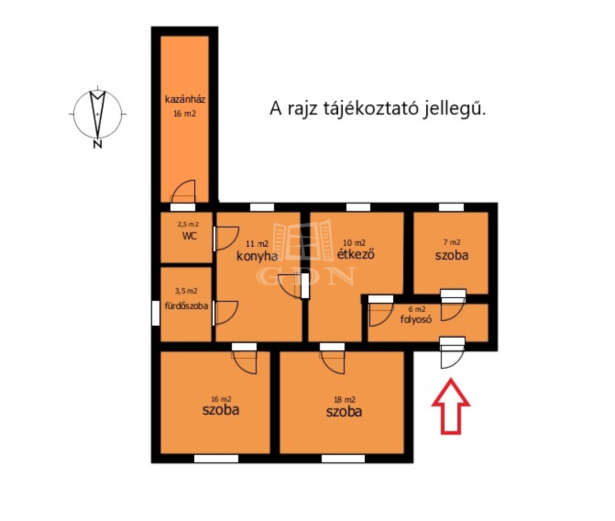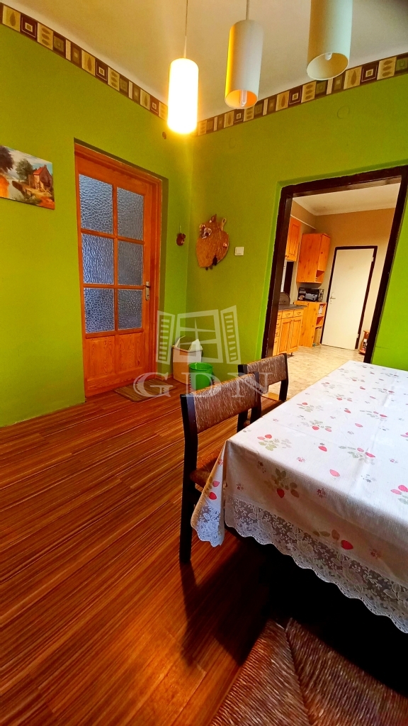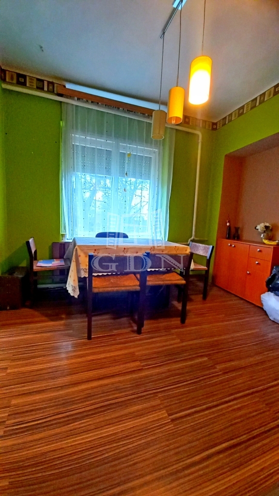 Két szoba, egy étkező és egy félszoba található az ingatlanban. A helyiségekben mindenhol radiátorok vannak. A szobák nagyméretű, korszerű nyílászárókkal felszereltek, az utcai ablakok redőnyösek. Az ingatlan fűtése vegyes tüzelésű kazánnal megoldott.