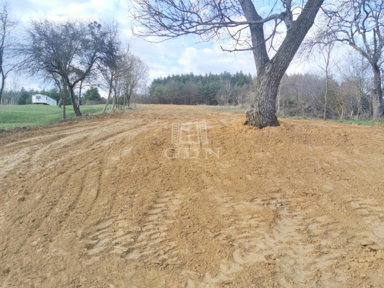 A telken néhány fa is található, így már most adott egy hangulatos, zöld környezet egy jövőbeli otthon kialakításához.