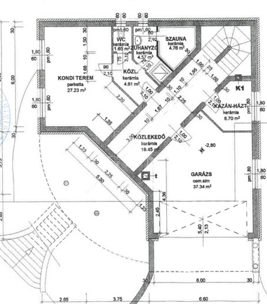 Szuterén és pinceszint: kétállásos fűtött garázs (37 nm), szauna, tágas fitnessz-szoba (27 nm) és tároló