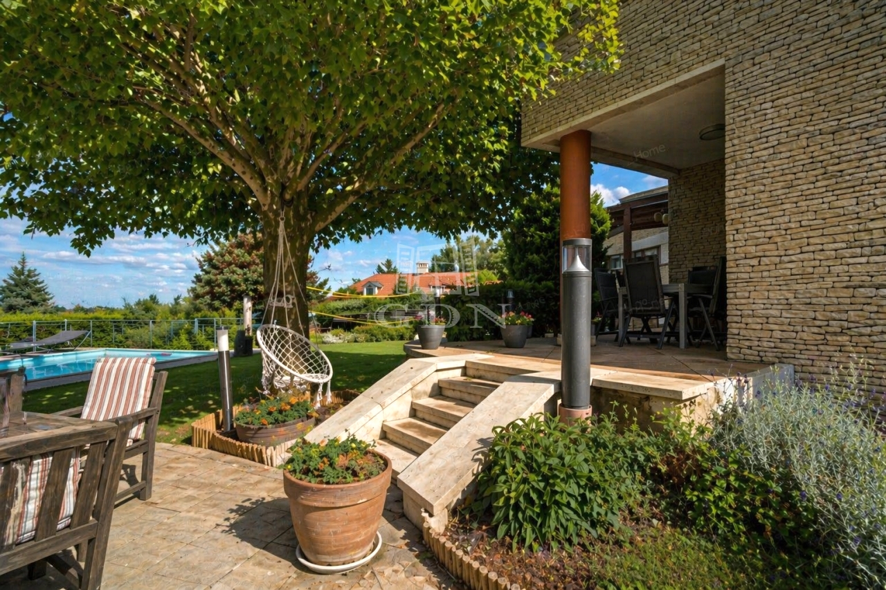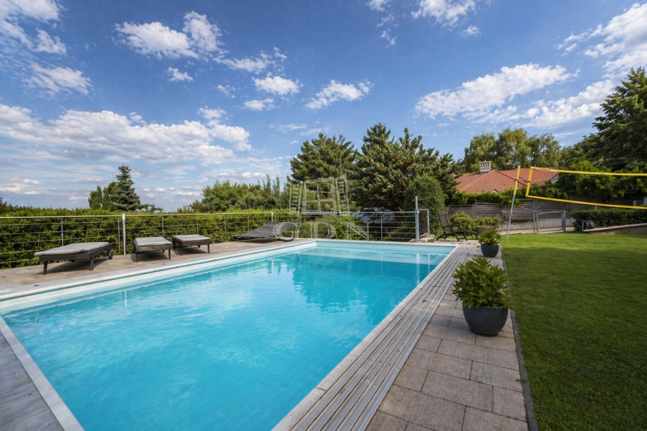 A 2000 négyzetméteres, intim telken elhelyezkedő, 443 négyzetméteres ingatlan elvehetetlen, örök panorámával rendelkezik.