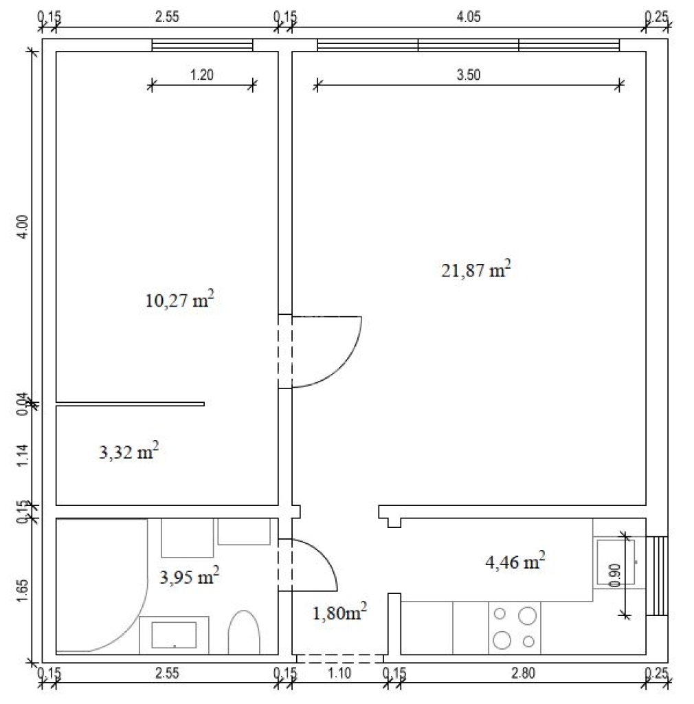 46 m2Alapterület 1 + 1 Szoba