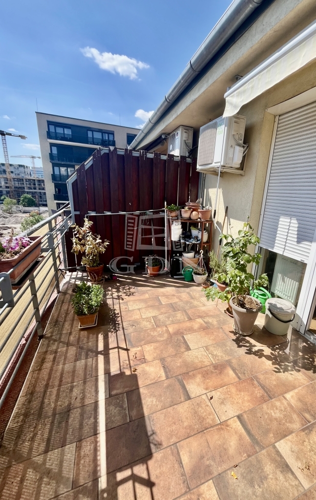Az erkély ideális pihenésre vagy kikapcsolódásra, akár hosszabb tavaszi-őszi időszakban is használható.