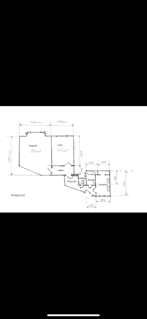 Jól alakítható alaprajz – a konyha áthelyezésével nappali + 2 szobás lakás is kialakítható