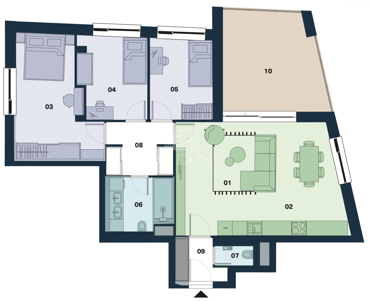 A 6 emeletes társasház 5. emeletén található ez a piacon hiánypótló három hálószobás összkomfortos, városi panorámás ingatlan. A központi tér a közel 35m2-es konyha -nappali melynek nyugati frontján egy összefüggő üvegfelület, nagy toló ajtókkal határolja a 18m2-es sarok terasztól mely tavasztól, őszig a nappali kiterjesztése. A dél-nyugati benapozásnak köszönhetően napfürdőzhetnek a leendő lakók, az alapterület üvegfelület aránynak köszönhetően pedig télen nyáron nagyon világos, mint egy igazi műterem lakás. Az átgondolt tervezésnek köszönhetően nagyszerűen elkülönülnek a hálószobák nappalitól.