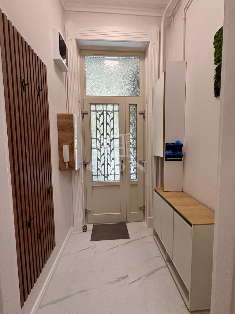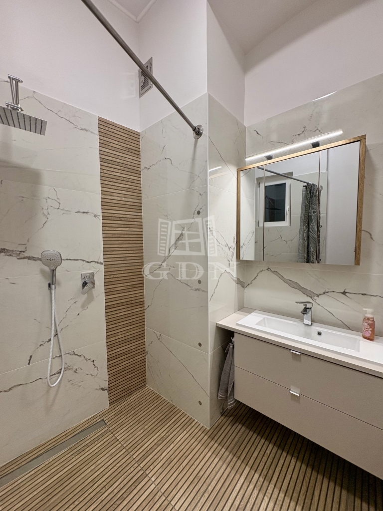 Az ingatlan praktikus kialakítású: tágas előtér, külön gardróbszoba, hálófülke, hatalmas zuhanyzós fürdőszoba, valamint külön helyiségben található bidés WC. Az ingatlan minden részlete átgondolt, kényelmes és modern életvitelt biztosít.