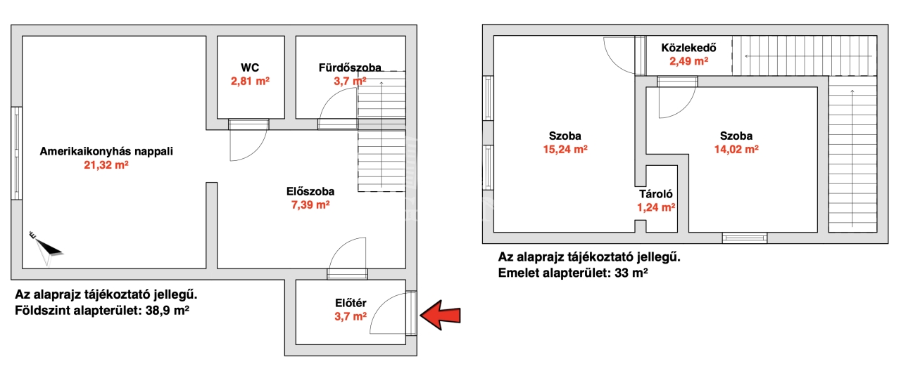 A lakás alsó szintjén amerikai konyhás nappali, valamint külön fürdőszoba és WC található, az emeleten pedig 2 tágas szoba került kialakításra.