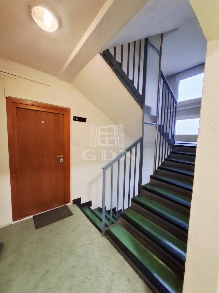 Eladó a XV. kerületben, Újpalotán, a Pólus Center közelében egy 7 emeletes épület 6. emeletén található, 35 m²-es, erkélyes, amerikai konyhás nappali + hálószobás, Generál felújított panellakás.
