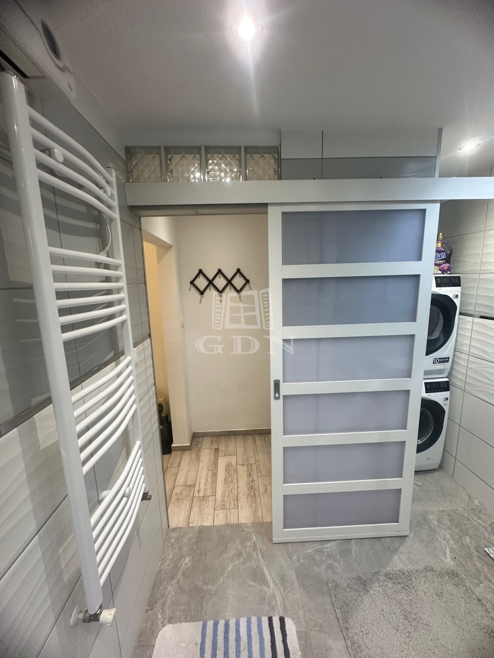 Mindkét szinten külön fürdőszoba található, saját bojlerrel, így a melegvíz-ellátás mindig zavartalan. A földszinti fürdőben kád és épített zuhanyzó is helyet kapott, míg az emeleten egy modern zuhanyzós kialakítás várja az ott lakókat.