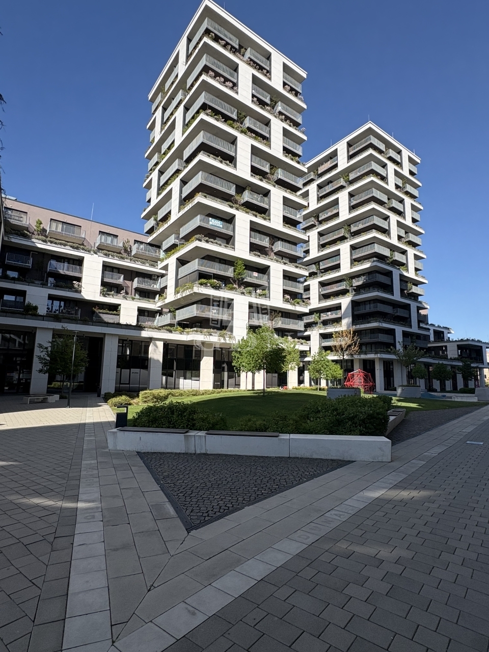 Az épületen belül és közvetlen környezetében számos kényelmi szolgáltatás elérhető: fodrászat, kozmetika, bisztró, pékség, pilates stúdió, cukrászműhely, játszótér, gyógyszertár, valamint üzlethelyiségek és irodák.