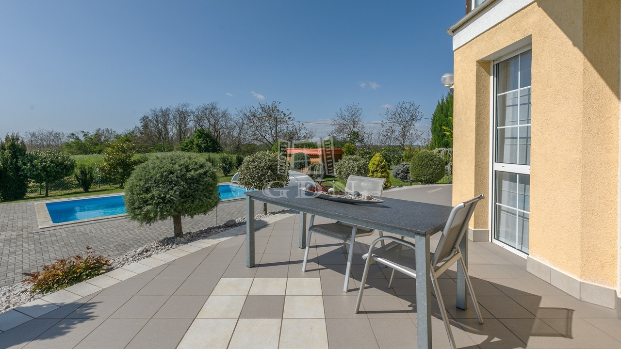 Az ingatlan egy 2347 m²-es telken helyezkedik el, ahol található még egy fedett szabadtéri medence, egy garázs, egy nagyobb műhely és egy pavilon is.