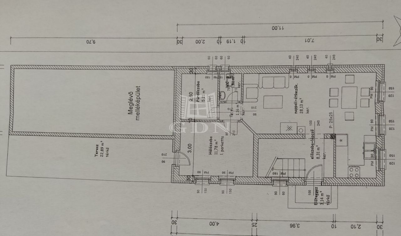 A lakóépülethez kapcsolódik egy kiváló állapotú és esztétikailag is kifogástalan, 40 nm alapterületű, vizes helyiségekkel rendelkező tégla melléképület, amely a későbbiekben akár a lakótér bővítését is lehetővé teszi. Jelenleg tároló-télikertként funkcionál.