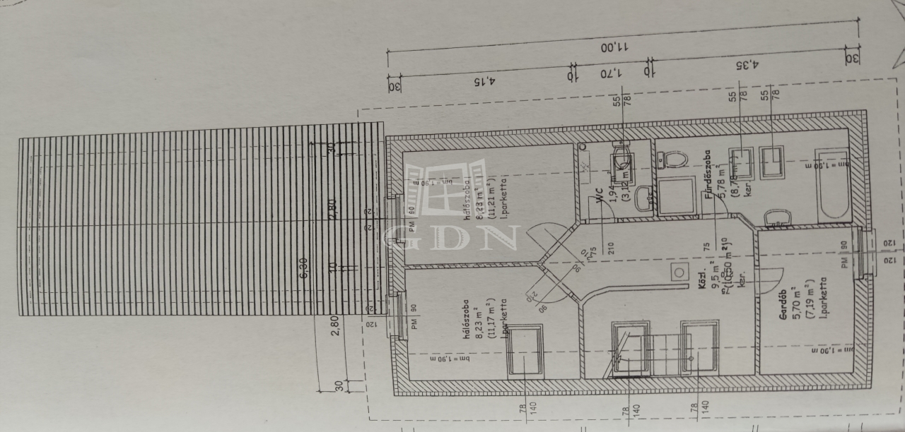 Az ingatlan két szinten 94 nm hasznos lakótérrel rendelkezik, konyha-ebédlő - nappali+ 3 hálószoba elosztású, dupla komfortos.