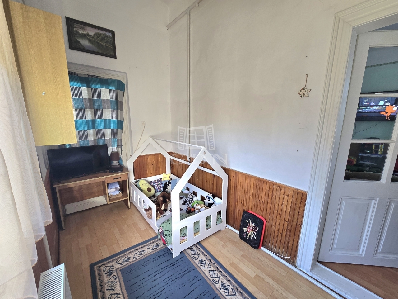 Az ingatlanban négy különálló, tágas szoba található, amelyek ideálisak nagyobb család számára is. A konyha-étkező kényelmes méretű, jól használható központi tér, amelyhez egy kimondottan világos, nagyvonalú közlekedő kapcsolódik. A fürdőszobában fürdőkád és zuhanyzó egyaránt helyet kapott, a WC külön helyiségben került kialakításra. A praktikumot szolgálja továbbá a kamra és a külön mosókonyha is.