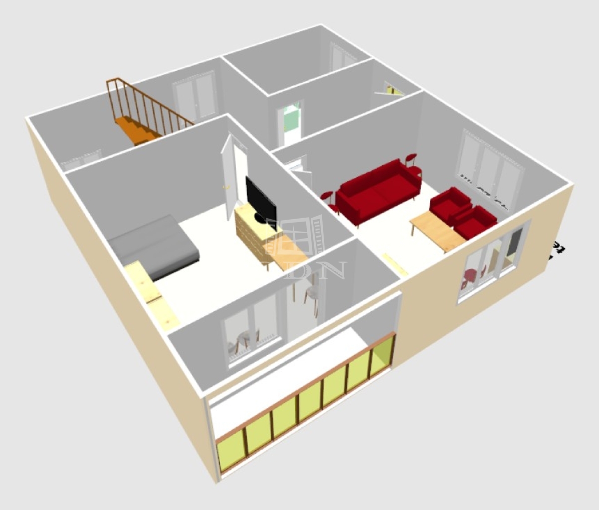 A lakóépület mind két bejáratánál valamint a hozzá épített nyári konyha és a tárolók előtt fedett teraszok találhatót. Továbbá az emeleten a nagy szoba valamint a folyosó előtt is erkély lett kialakítva. Az épület akár 3 generáció vagy 3 különálló lakrész kialakítására is alkalmas lehet, hiszen a földszint, az emelet, illetve a főépülethez épített nyári konyha a hozzá tartozó tárolókkal átalakíthatók külön lakótérré.