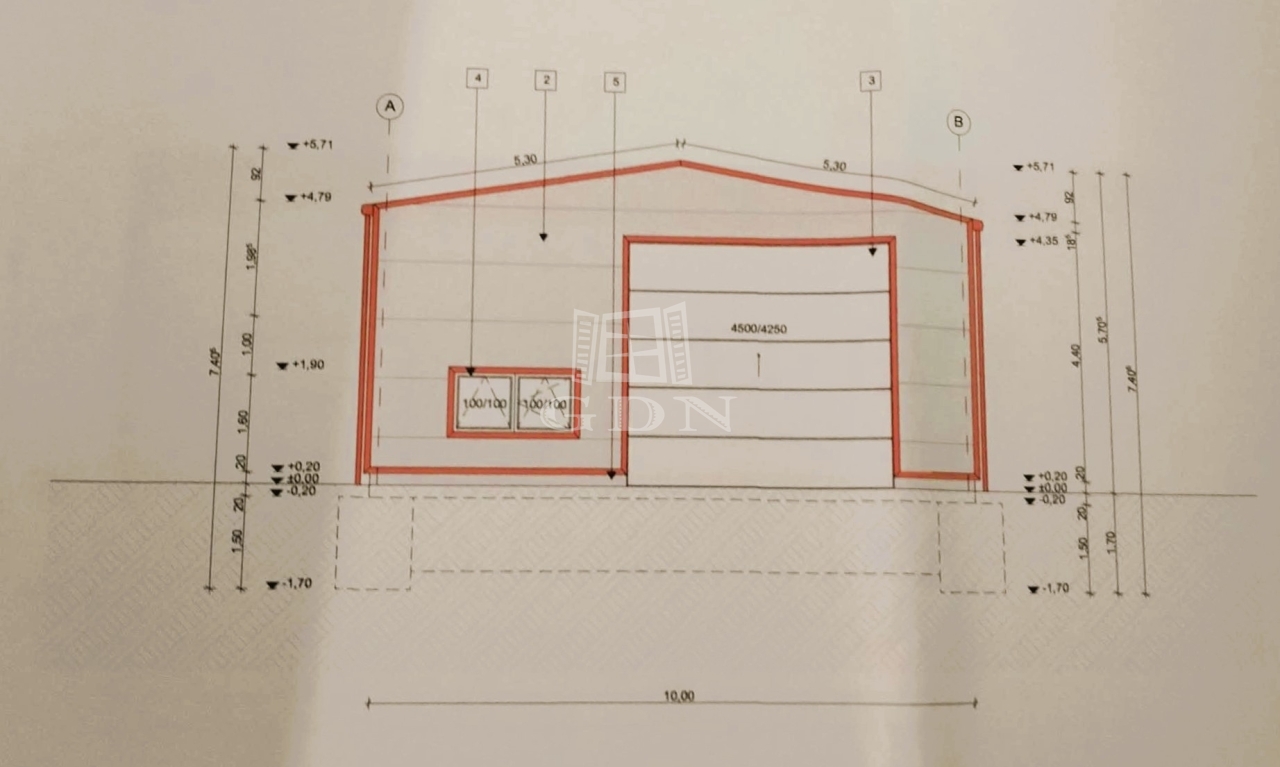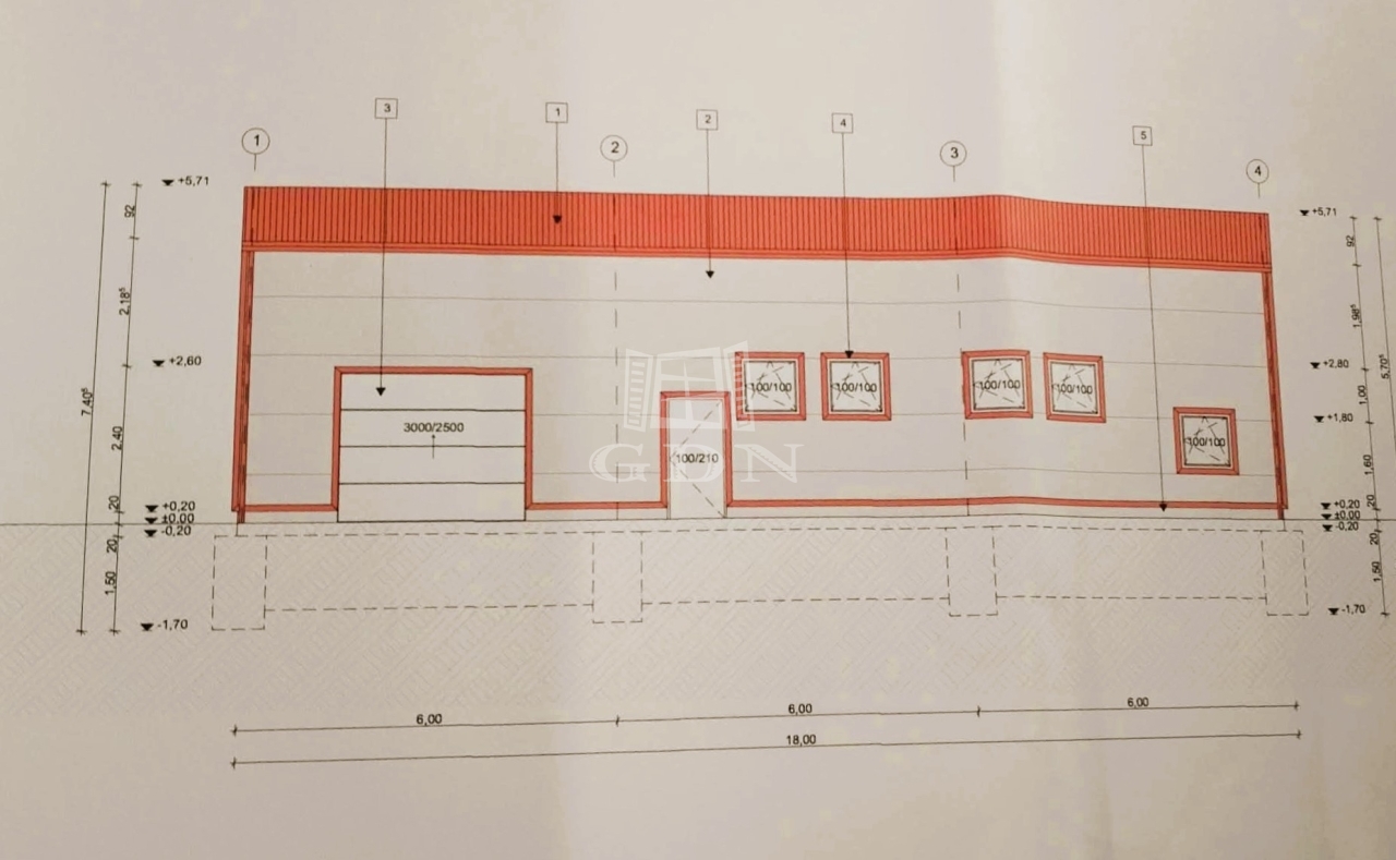 Az ingatlan rendelkezik egy érvényes építési tervvel ami egy 180nm alapterületű csarnok kivitelezését tartalmazza, valamint a csarnok nem telepített fém vázszerkezetét. Víz és áram elérhető távolságban bíztosított, a terület beépíthetősége 40%, vasútállomás 10perc sétatávolságra található.