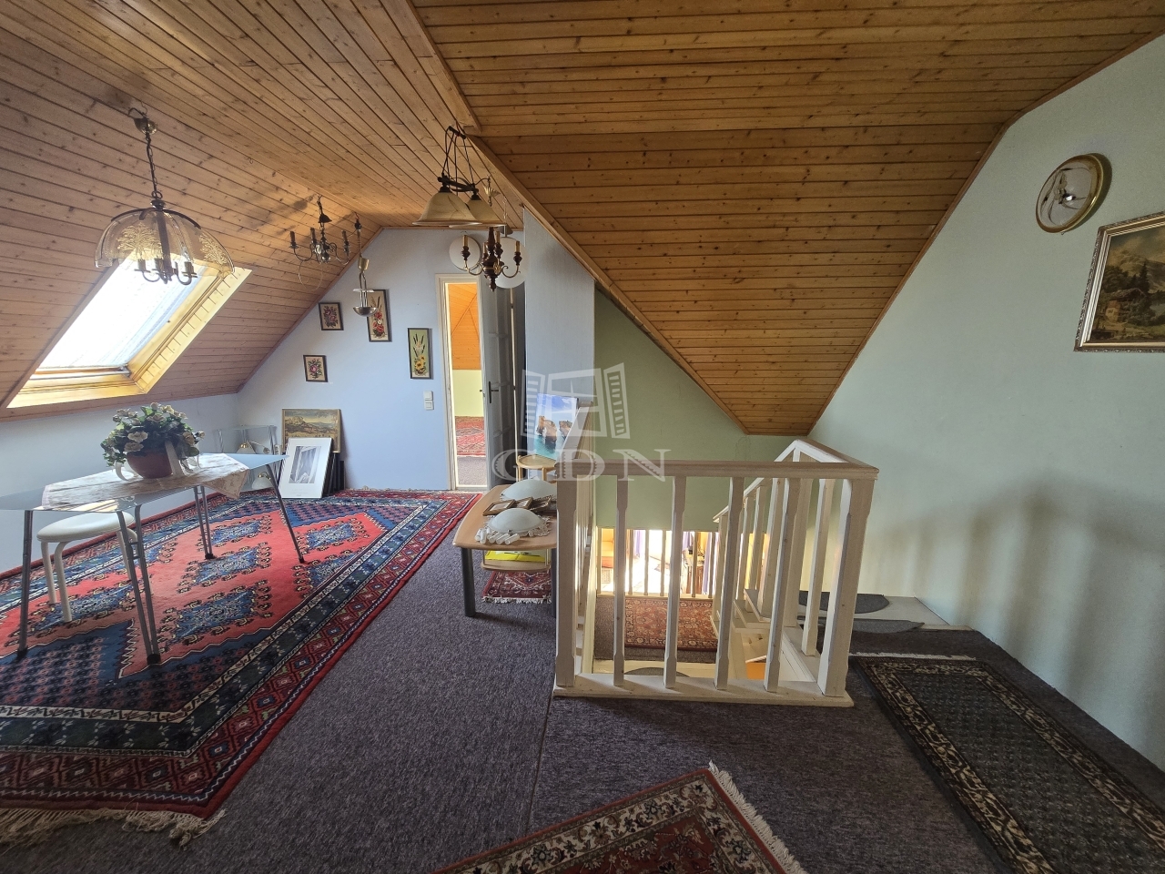 Az emeleti szinten jelenleg három kész szoba található, melyek mind tágasak, jól berendezhetők és természetes fénnyel telítettek. Az egyik szobához egy külön kis folyosórész kapcsolódik, amely gardrób kialakítására is lehetőséget ad. Ezen kívül rendelkezésre áll még egy további befejezésre váró helyiség, ahol egy ötödik szoba alakítható ki. Az emeleten fürdőszoba, külön WC és egy tágas közlekedő is helyet kapott.