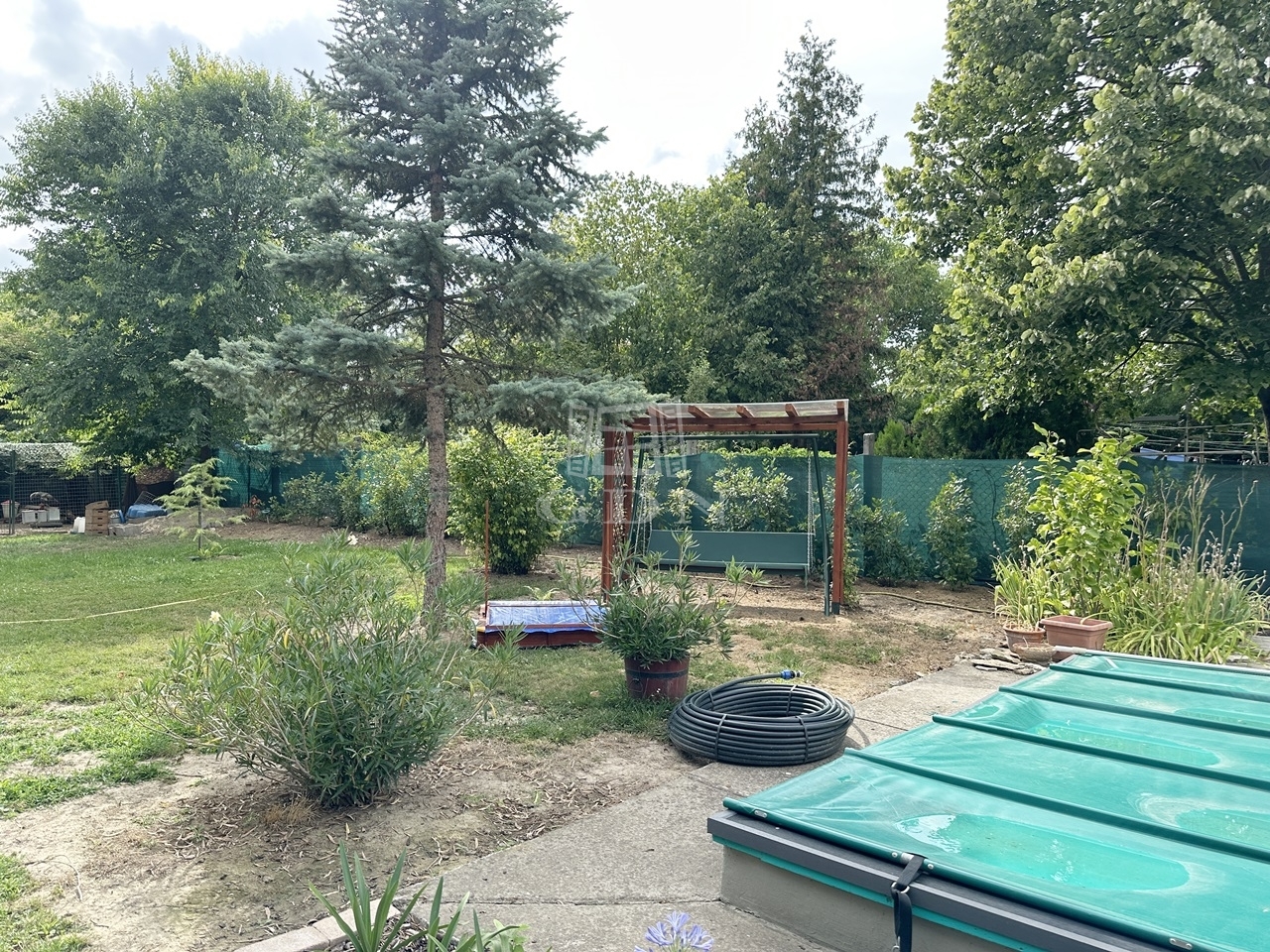 Az épület a 90-es években beton alapra, tégla falazattal épült, külső szigeteléssel ellátott, betoncserép tetőzettel rendelkezik (139 nm) + 22 terasz. A parkosított kertben (885 nm) medence, a kert végében kutya kennel, tárolók és baromfi tartásra kialakított alkalmas udvarrész is található a málna, eper és veteményes kert mellett.