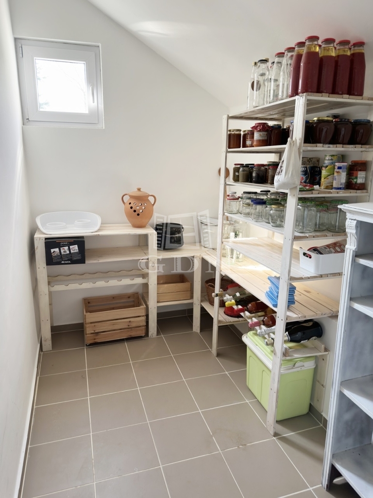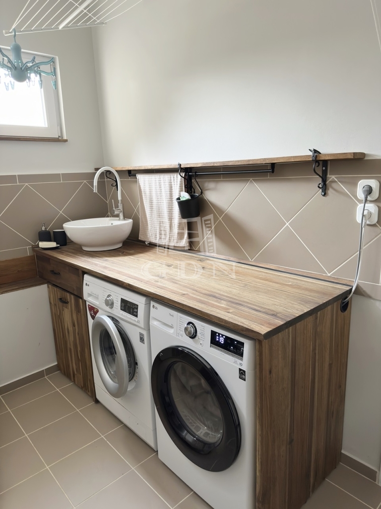 A garázson keresztül érhető el a mosókonyha és kazánház ahonnan szintén kiléphetünk a kertbe, valamint a nagyméretű spájz is.