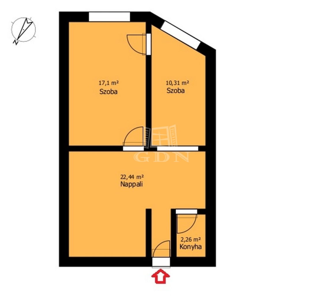 57m2-es, 3 különálló szobából, 1 konyhából álló az ingatlan.