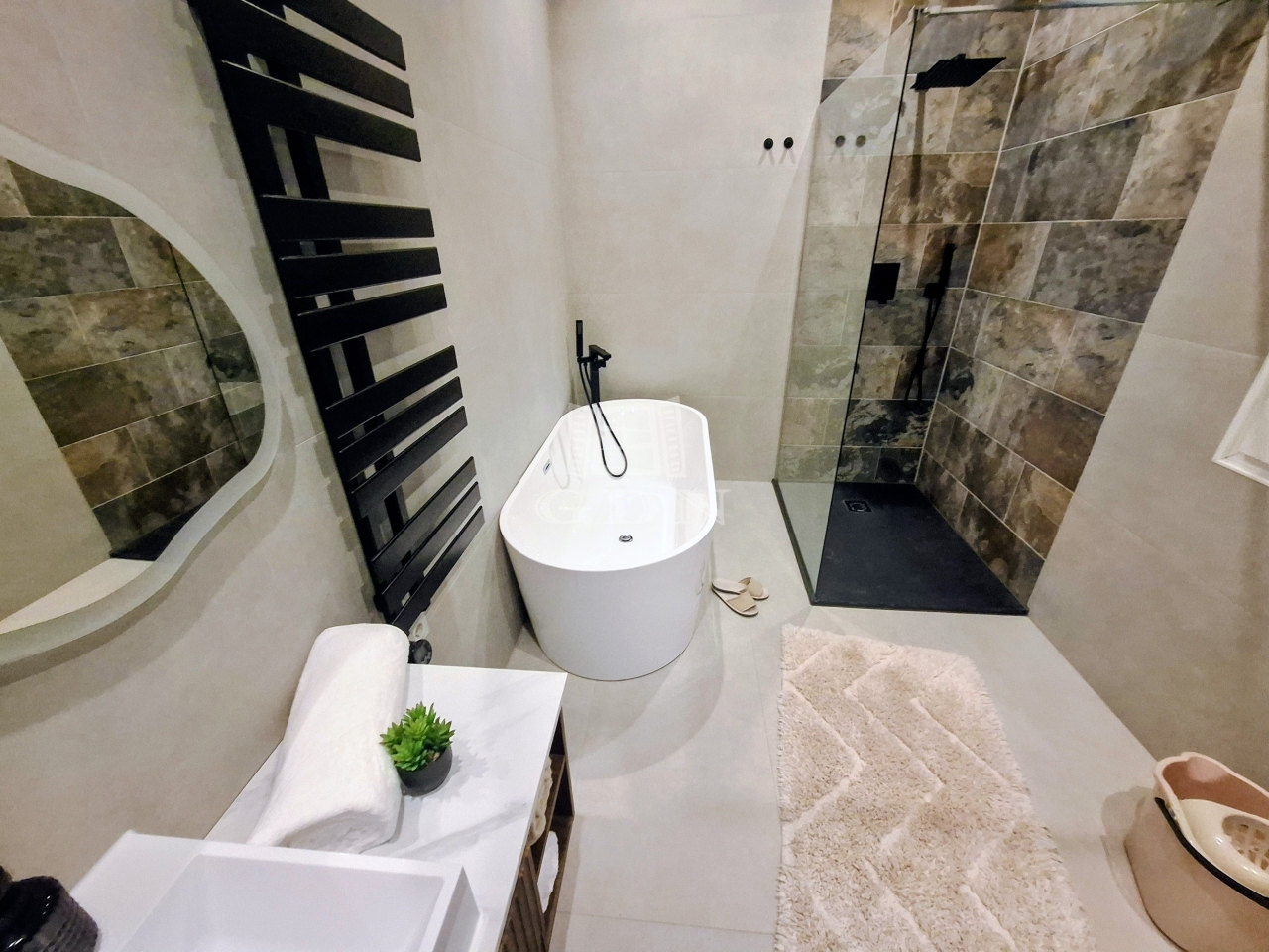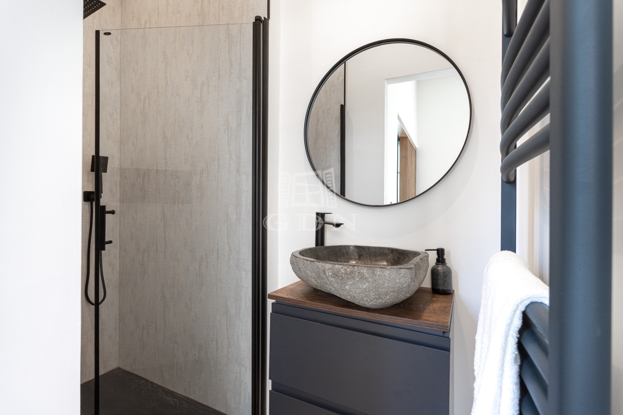 A felújítás során magas színvonalú anyagok kerültek felhasználásra, amely modern és elegáns megjelenést biztosít.