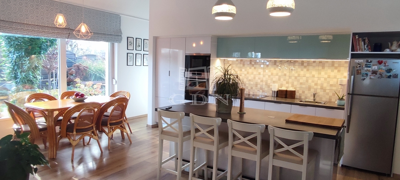 - Tágas, világos amerikai konyhás nappali, beépített gépekkel felszerelt konyhabútorral
