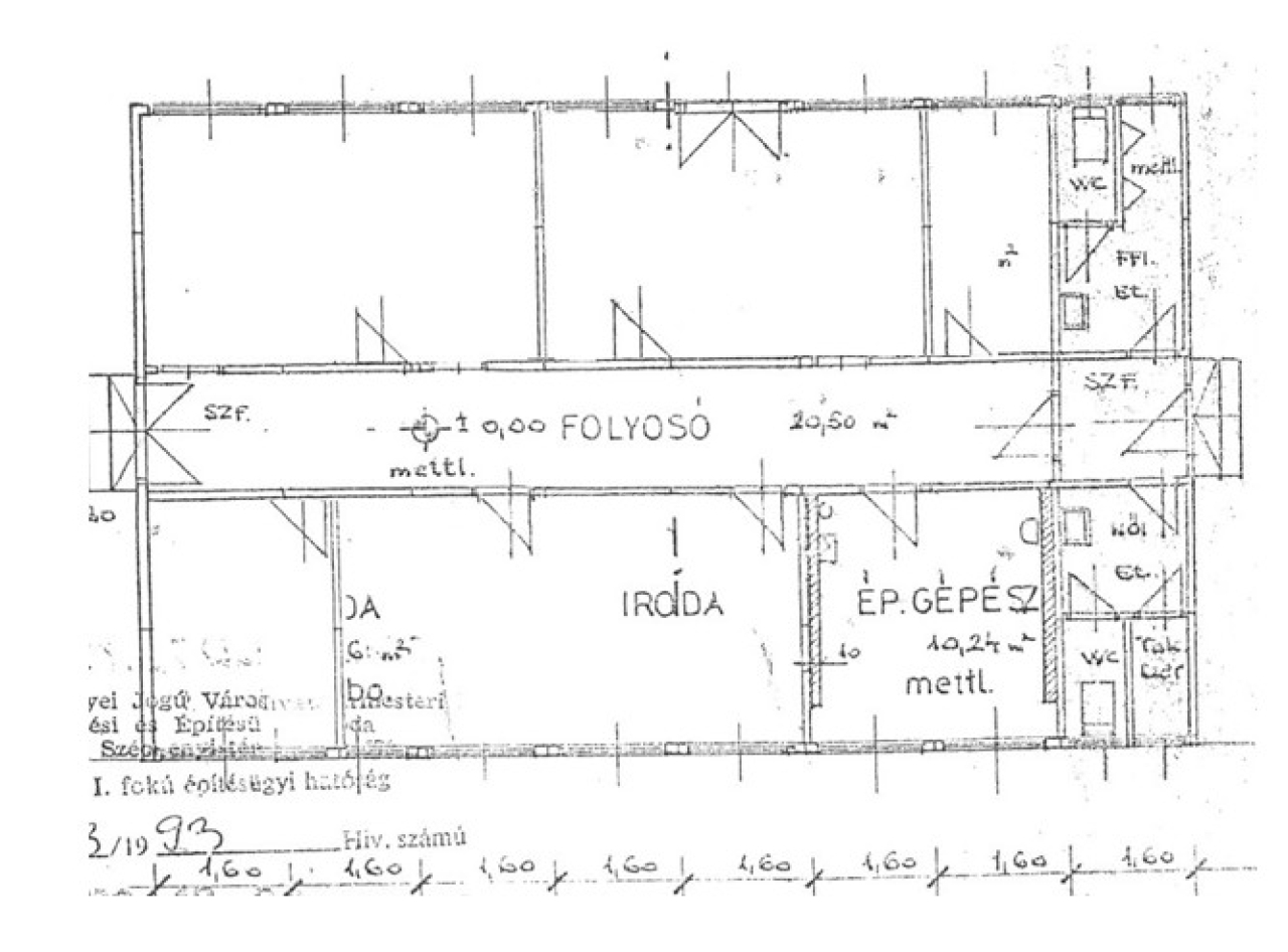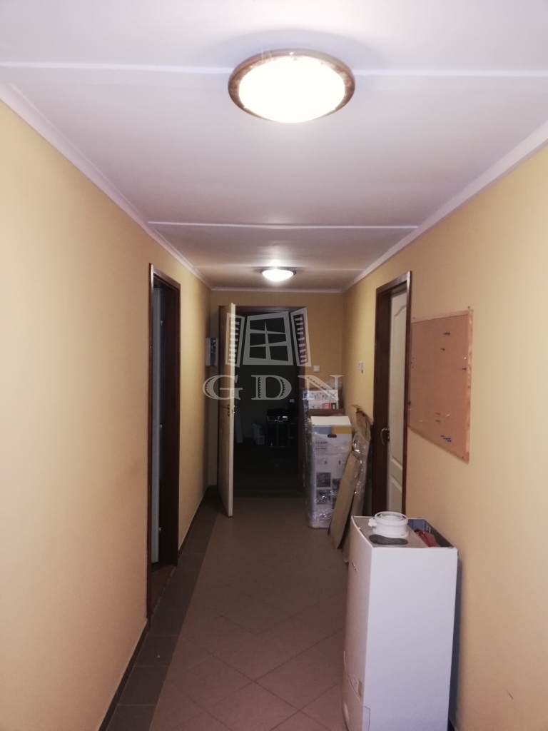 Az ingatlan 2 bejárattal rendelkezik, szociális helyiségekből, teakonyhából, 3 nagyobb iroda helyiségből, egy kisebb tárgyalóból és egy gépházból áll. A helyiségek az épület közepén húzódó folyosóról nyílnak.