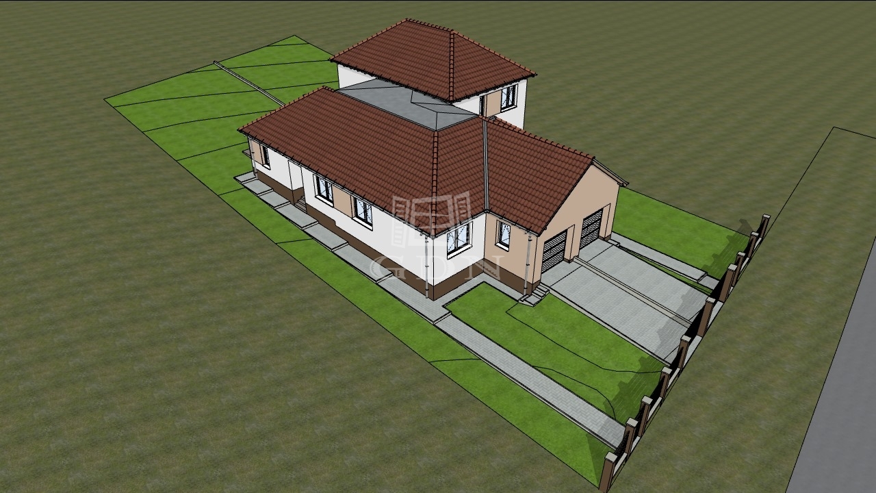 Jelen ikerház fél nettó 145 nm hasznos alapterületű két szintes épület + 20 nm-es fedett garázs, valamint 20 nm-es terasz és fedett belépő.