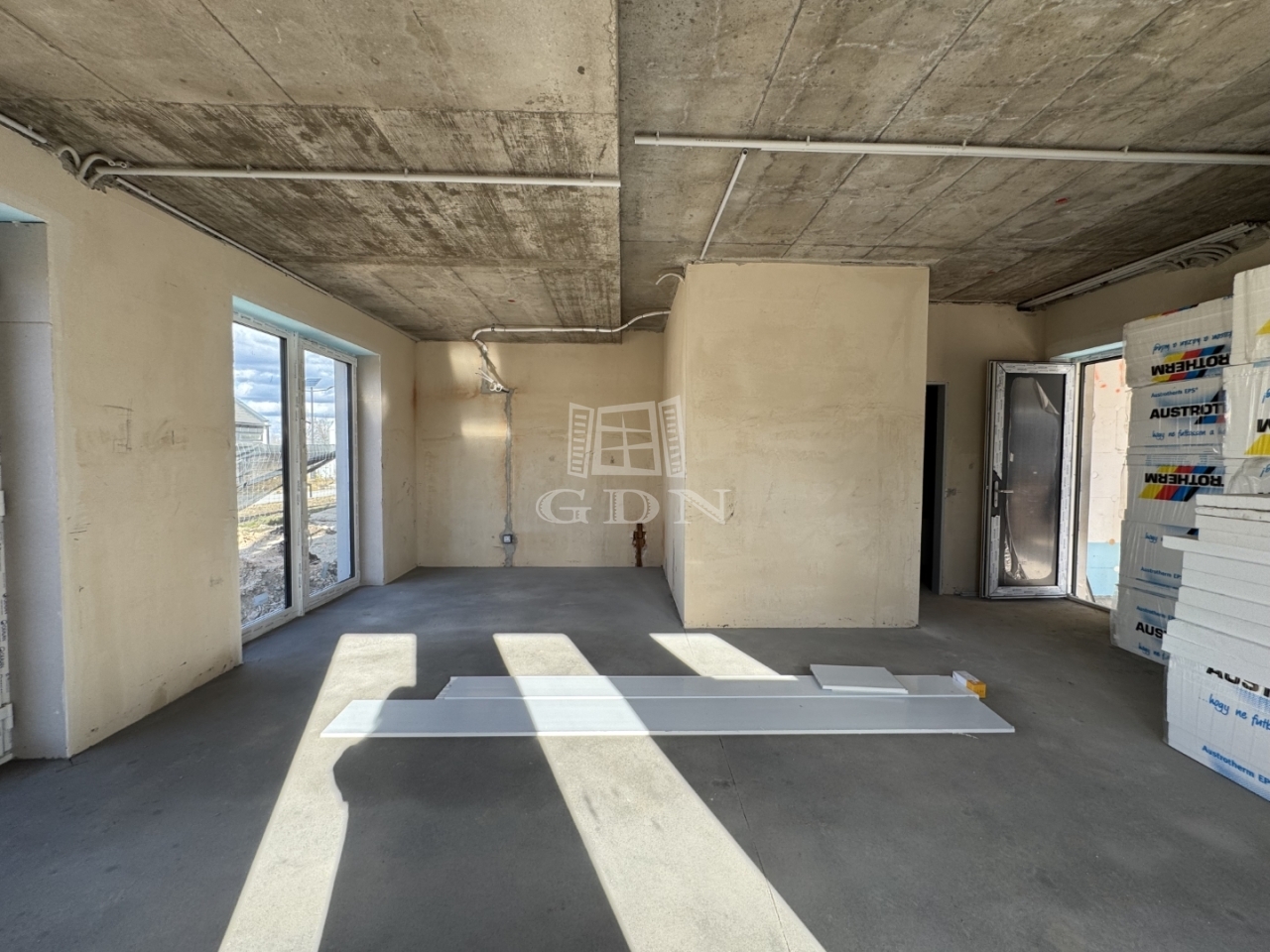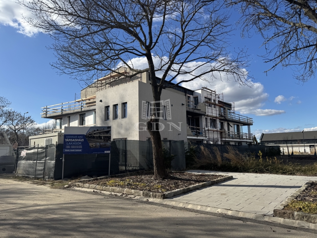A társasház összesen 12 lakásból és 4 üzlethelyiségből áll – tervezett műszaki átadás: 2026. szeptember.