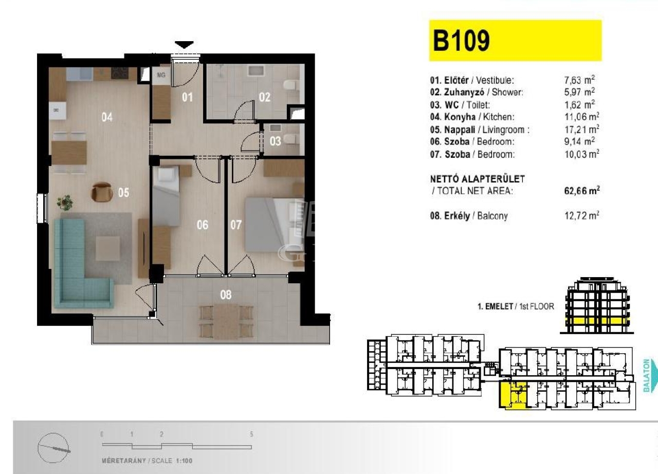 Az ötemeletes apartmanház a Balatonra merőlegesen helyezkedik el, így biztosítva a lakásokból az örök balatoni panorámát tulajdonosainak. Modern, új építésű, prémium minőségű apartmanok várják Önt, közvetlenül a vízparton. Az ingatlan előtt húzódó több mint 3 km hosszú szabad strand gondozott zöldterületekkel, parti sétányokkal és sportolási lehetőségeket kínáló kölcsönzőhelyekkel szolgálja ki az itt nyaralók igényeit.