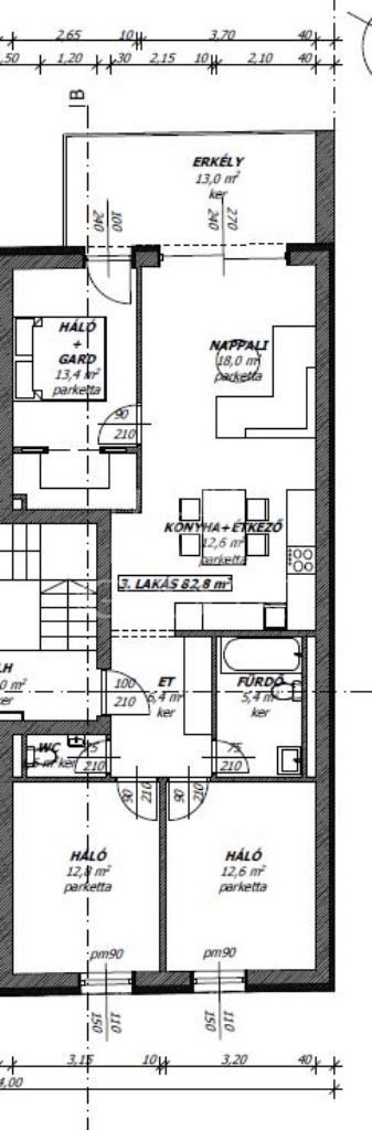 83 m2Alapterület 1 + 3 Szoba