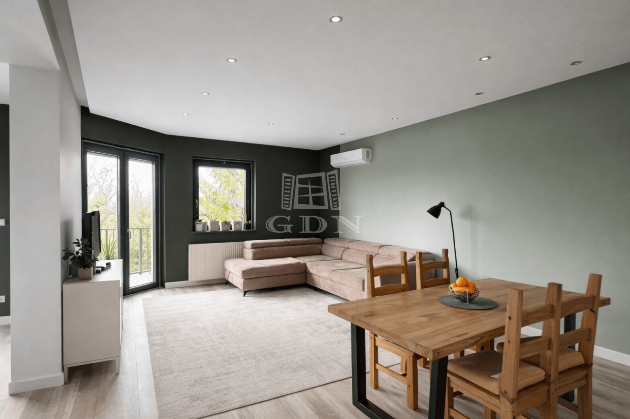 A konyha prémium AEG gépekkel felszerelt. A komfortot elektromos redőnyök és klímaberendezés növeli. A korszerű gázkazánnak köszönhetően az ingatlan gazdaságosan fenntartható.