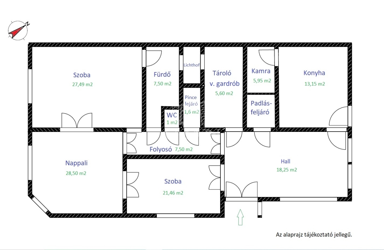 Az épület alatt egy 35 m2-es pince is található, amelyet a lakásból lehet megközelíteni.