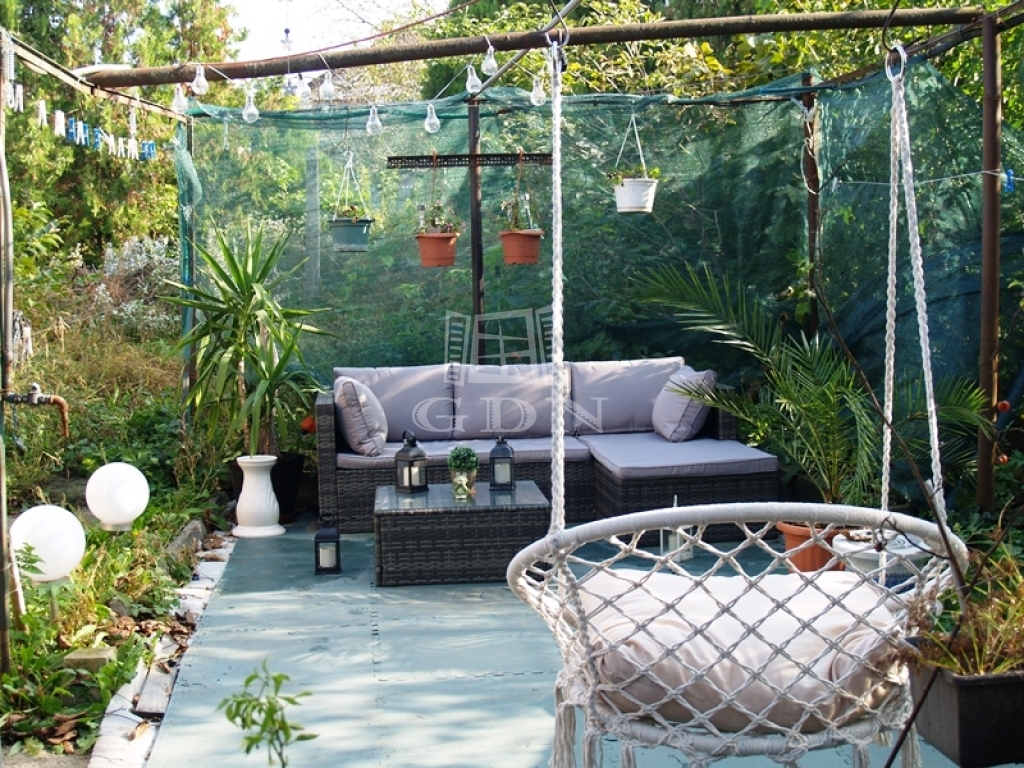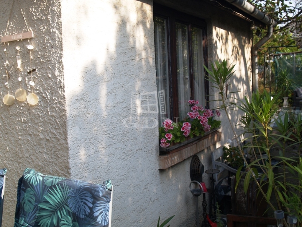 Ezenfelül a telken található egy zárt garázs, nyári konyha és egy tároló valamint egy pince is, a kert rendezett, öntözése fúrt kútról biztosított.