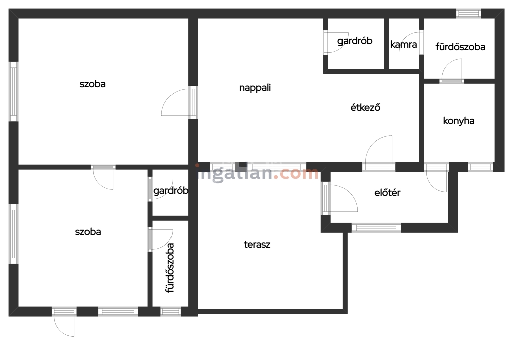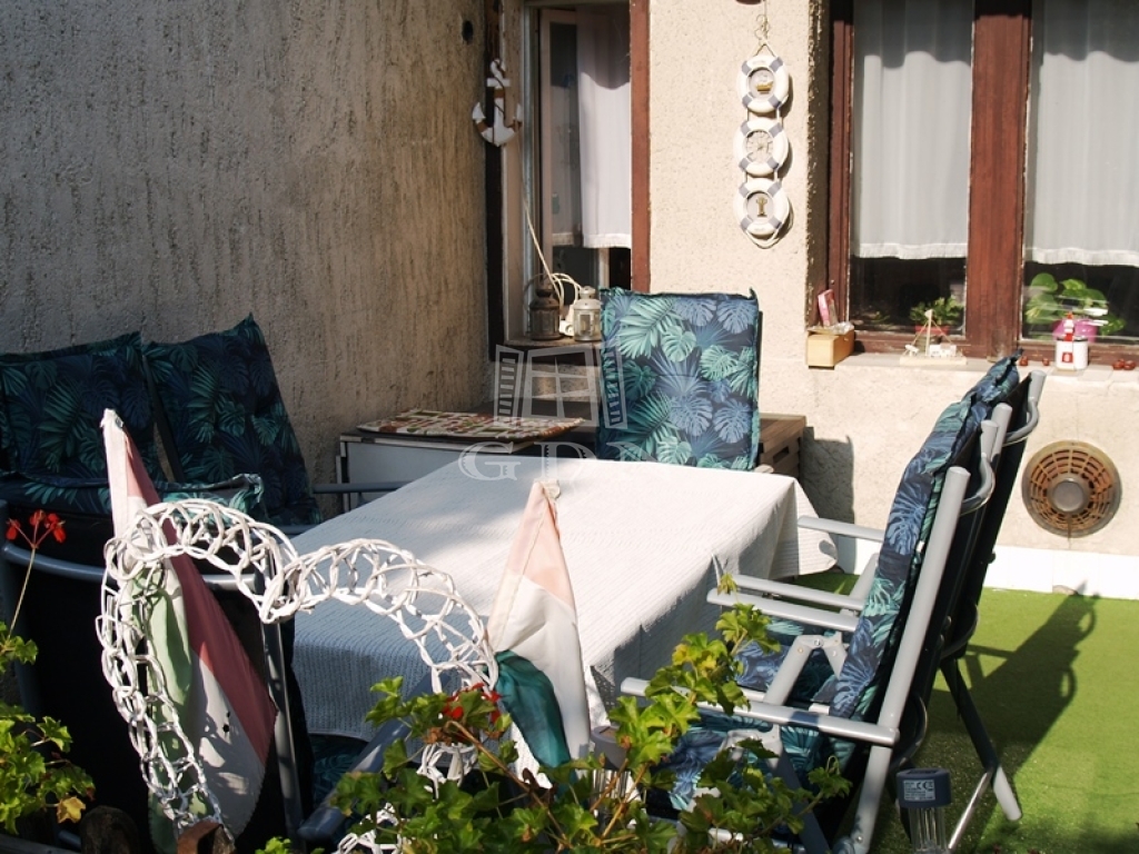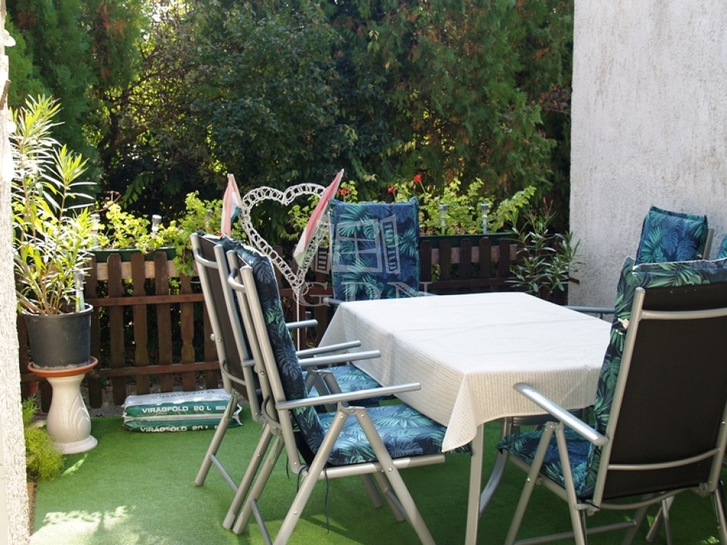 Elosztása: két szoba, nappali, fürdőszoba, konyha, étkező, fürdőszoba ,gardrób, kamra, előtér, terasz.