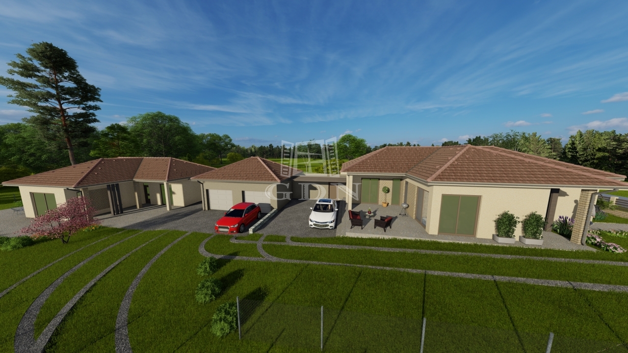 Az ikerház két fele között két tároló és egy dupla garázs található, így a privát szféra teljes mértékben biztosított – a szomszédok élettere nem látszik át.