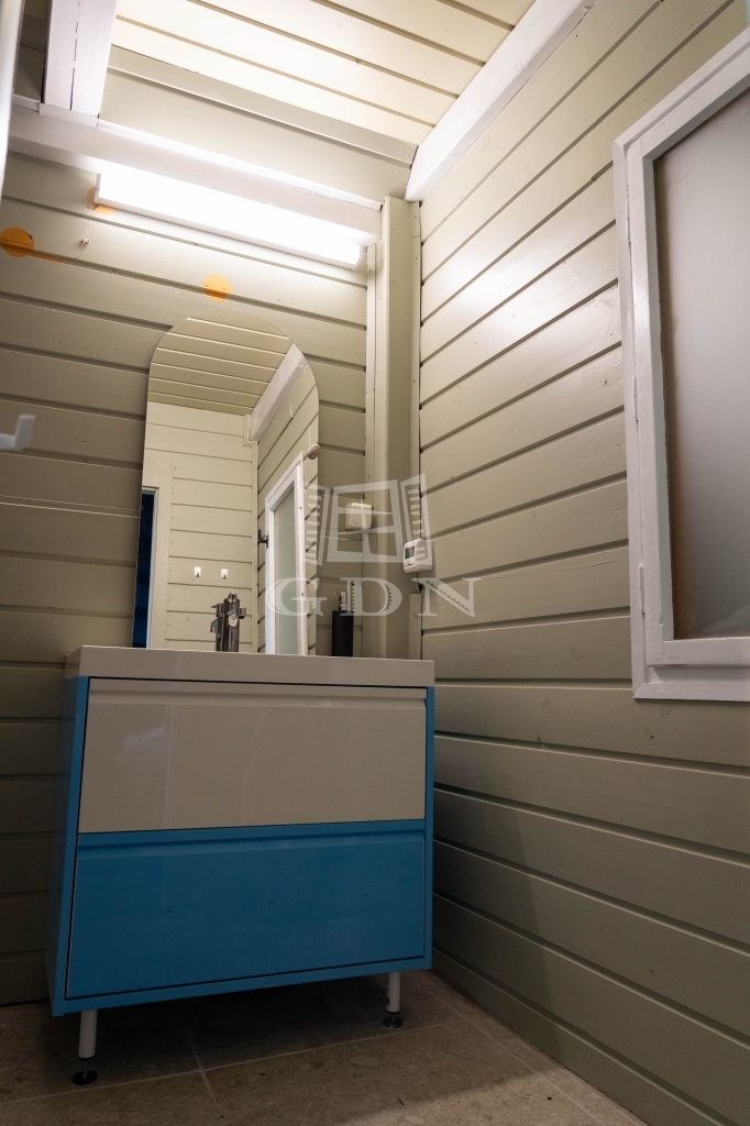 - Alsó szint: mosdó és tárolóhelyiség